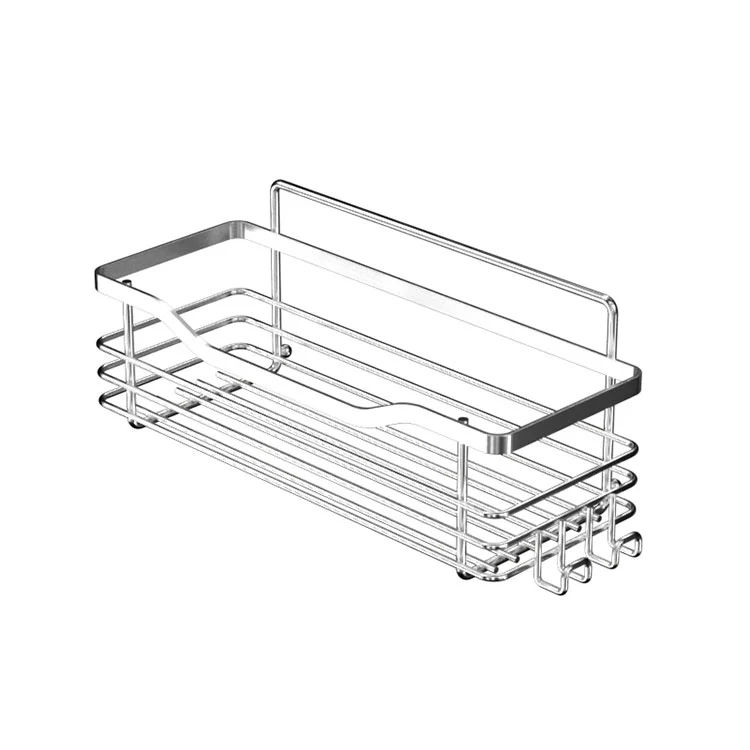 Біз қабырғаға бұрғыланбайтын металл душқа арналған ыдысты жасау үшін 201 баспайтын болатты қолдандық. Қалың сым диаметрі оның сенімді жүк көтеру қабілетін қамтамасыз етеді. Қабат аралығын өз қалауыңыз бойынша реттеуге болады, сонымен қатар комбинациялар саны шексіз сыйымдылықты қамтамасыз етеді. 8 см биіктіктегі қоршау заттардың құлап кетпеуін қамтамасыз етеді. Артқы жағында орнатылған доп конструкциясы еңкеймей тұрақты суспензияны қамтамасыз етеді.